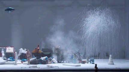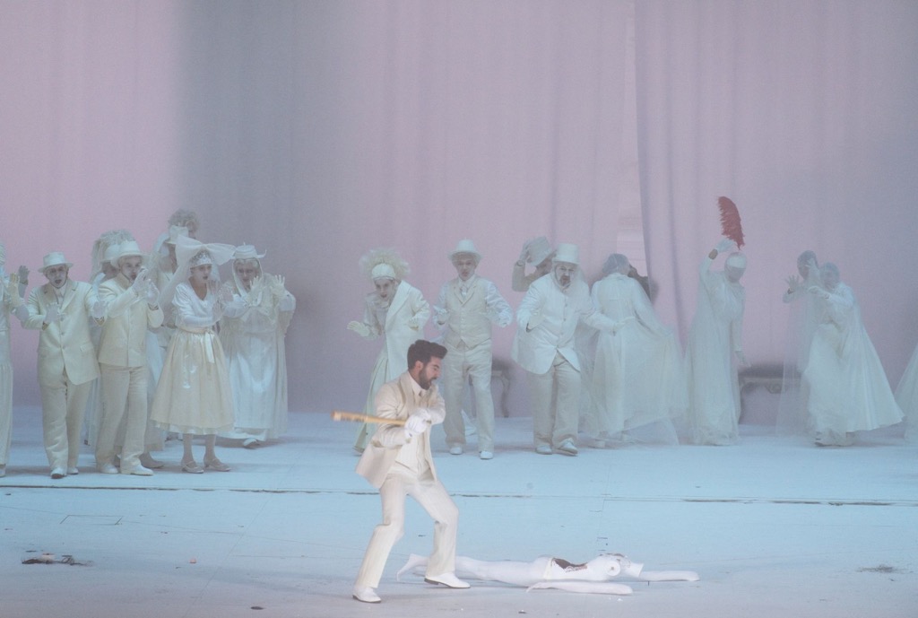 Коллега права: количество деталей удушающе. Но и сама раблезианская избыточность предложенной символики, включая разбивающийся вдребезги рояль, прилетающий на сцену с колосников, разве не отражает общей избыточной мозаичности современного мировосприятия, его инстаграммно-фейсбучной фрагментарности, вторгающийся развлекательной лавиной в нашу жизнь? Девиз пост-постмодернизма «Кому надо — тот поймёт (и лайкнет)» отражается в актуальном сегодня отсутствии линейно выстроенного нарратива практически во всём, что нас окружает: мы не понимаем, с чего всё началось и куда всё движется. Ну если не принимать в расчёт того, что мы все в конце концов умрём.