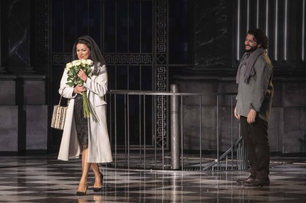 К таким неудачным фестивальным проектам я бы отнёс и тоскливую «Тоску» Михаэля Штурмингера, поставленную на Пасхальном фестивале в Зальцбурге 2018 г. Штурмингер — слабый, безыдейный режиссёр, но спектакль он сделал хоть и глупый, но недешёвый, поэтому, как говорится, не выбрасывать же. Да и спонсор показа – австрийская корпорация, занимающаяся оборонными заказами под видом хрустальной бижутерии, *) – оплатила возобновление оперного блокбастера про примадонну, креативного оппозиционера и гэбиста-двурушника только ради того, чтобы Анна Нетребко зарезала негодяя Скарпиа в роскошном кроваво-красном платье, усыпанном 50 тысячами переливающихся кристаллов. Но тут уважаемые спонсоры просчитались: платье осталось практически незамеченным, а вот роль, которую сделала Анна Нетребко, гарантированно войдёт в историю прочтений этой партии не только артистически, но и вокально.