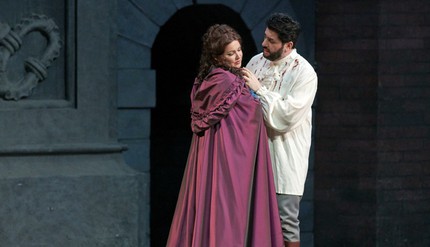 Анна Нетребко переносит акцент с внешних актёрских ресурсов, которые у певицы давно заезжены и не удивляют, на вокальные, и мы получаем тот самый редкий чисто оперный результат, когда слушать интереснее, чем смотреть. Впрочем, и смотреть не скучно, так как культовую арию «Vissi d'arte» певица начинает петь лёжа на столе после физически сложной сцены как бы изнасилования (нам показывают хватания, движения, руки на полу, ноги на столе, — всё как в жизни; настоящий праздник для седых эротоманов). Но самое приятное то, что певица виртуозно филирует звук, бережно округляет фразы в сложнейших местах, чётко обрисовывая эмоциональную канву главной роли про саму себя, о самой себе, а, может быть, и для самой себя. Хотя тут, несмотря на прекрасно сложившиеся ансамбли, нужно заметить, что муж и жена в данном случае – явления совершенно разного уровня и порядка, как события на разных этажах небоскрёба.
