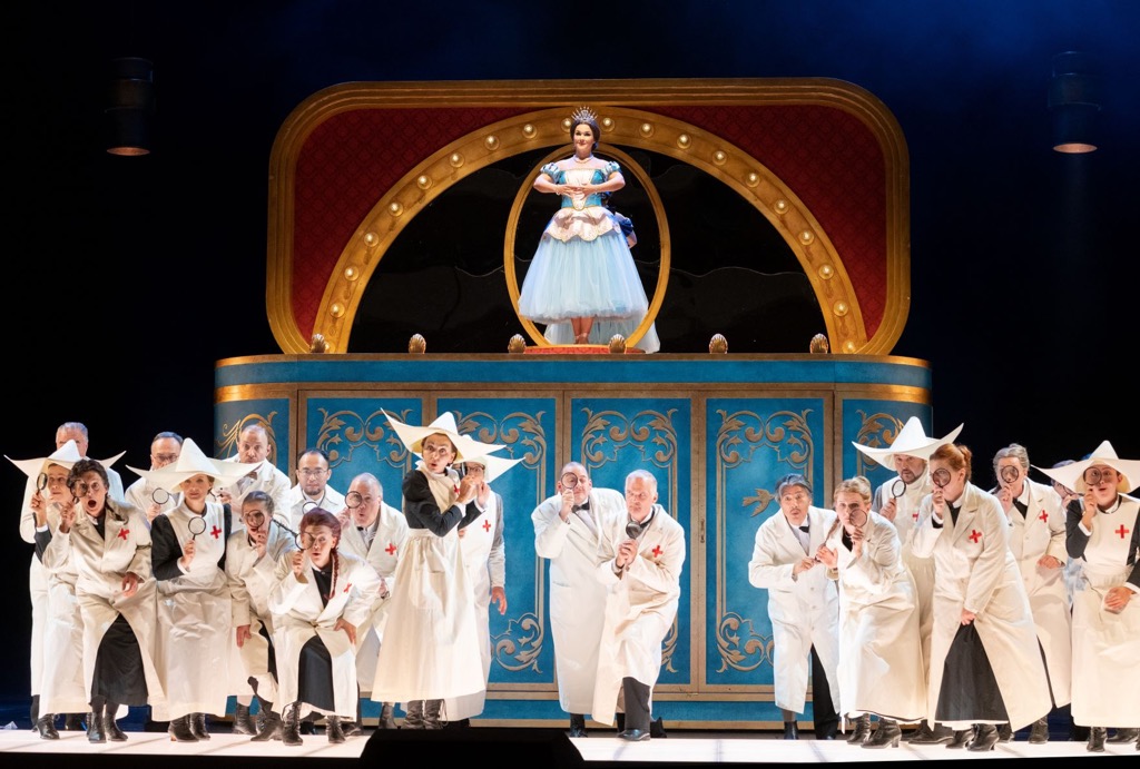 Радостно улыбающаяся Олимпия — не только певица, но и балерина в пуантах. В платье с роскошным синим бантом на спине она проделывала перед зеркалом несложные балетные экзерсисы и растерянно суетилась, переживая за себя, пока Коппелиус ломал механизм шкатулки, в которую Олимпию поселили постановщики. Казалось, что партия не стоила артистке совершенно никаких усилий. Чтобы уничтожить такую чудесную куклу, действительно нужно быть одним из воплощений мирового зла.