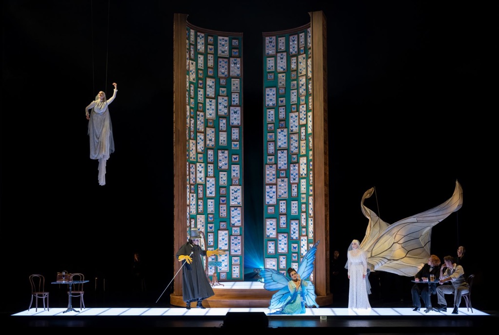 Затем Ольга Перетятько превратилась в трогательную беззащитную Антонию — бабочку с огромными синими крыльями. Этот образ удивительно соответствовал сюжету и подходящей к нему грусти, связанной с ощущением эфемерности пения Перетятько — оно промелькнуло и закончилось в одно мгновение. Хотелось, чтобы эти непрерывные тона чистейшей вокальной линии не исчезали так быстро, чтобы Гофман и Оффенбах так не спешили заканчивать жизнь героини.