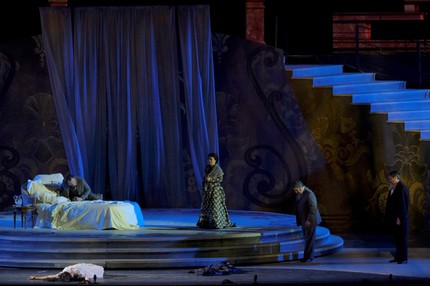 В заключение пара слов о постановке. Да, мы говорим «Травиата» и подразумеваем Дзеффирелли. Мы говорим Дзеффирелли и понимаем, что прошлого не вернуть. Насколько я помню, тот великий спектакль в Метрополитен Опере, по мотивам которого был снят известный фильм-опера с Терезой Стратас и Пласидо Доминго, так и не был записан на плёнку. Мне довелось увидеть это чудо во время нью-йоркского дебюта Йонаса Кауфмана в 2006 г. Это сложно передать словами, когда многотысячный зал взрывается аплодисментами, как только открывается занавес. Тяжесть бархата и парчи, блеск хрусталя, пламя свечей, пёстрое мельтешение костюмов, сверкание бокалов, рельефность скульптур и багетов, головокружительное масштабирование реквизита, включая тарелки по полметра диаметром, чтобы узоры на них могли рассмотреть с последнего ряда галёрки…