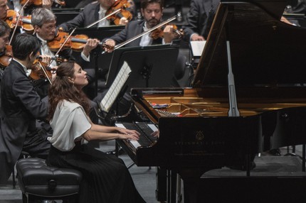 Этот стиль графичной резкости в выделке фраз идеально подошёл Первому фортепианному концерту С. С. Прокофьева (оp. 10, 1912). Это короткое искромётное сочинение было написано композитором в 20-летнем возрасте. Его импульсивная игривость отмечена печатью дерзкой свободы от чьих-либо капризных ожиданий. Именно с этим экстремальным сочинением Прокофьева дебютировала на Зальцбургском фестивале в этот вечер Анна Винницкая. Сочетание совершенно запредельной, почти безумной виртуозности с элегантностью, с которым пианистка исполнила этот концерт, — эффект неожиданный и запоминающийся. Звучание отличалось филигранной завершенностью каждого пассажа и головокружительной слаженностью музыкантов. Колокольчиковый тембр нового «Стейнвея», приобретённого фестивалем накануне, сверкающей звуковой инкрустацией оттенял это экстраординарное выступление.