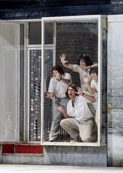 Эта безнаказанность садистов по обе стороны рампы удручает несказанно. И совершенно фантастический ансамбль солистов во главе с изумительным Бо Сковхусом (Рюдзи), виртуозной сопрано Верой-Лотте Бёкер и лучезарным тенором Джоша Лоувелла (Нобору), идеально воплощающий всё головокружительное электричество драматических токов партитуры, выглядит, как то самое преданное море, силу и мощь которого герои новеллы Мисимы и оперы Хенце используют для того, чтобы уничтожить радость бытия и надежду на счастье.