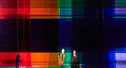 Ну а чего ещё ждать от человека, который решил из шекспировского «Гамлета» сделать 222 (!) короткометражных фильма, разбив драматический текст трагедии на 111 частей? Вообще Герман Фритч относится к тем концептуальным художникам, актёрам и режиссёрам, которые любят рассказывать о своей концептуальности и у которых на словах одно, а что там в голове, — ни один томограф не рассмотрит. Эта зависимость от декларирования принципов самовыражения — верный признак обильной оригинальности: если принципы творчества настолько неочевидны, что их нужно декларировать, то ждать прозрачности от самого художественного высказывания, само собой, не приходится. Если только речь не о той цветной прозрачности, которой режиссёр занавешивает сцену Венской оперы. Неудивительно, что и выход г-на Фритча на поклоны, который был обыгран, как вынос Фритча на поклоны, вызвал в зале приглушённое недоумение.