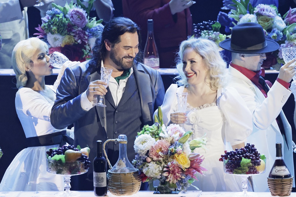Опытнейший певец и Музыкант с большой буквы предстал невероятно галантным героем-обольстителем, вальяжным и подчеркнуто рафинированным интеллектуалом, а на противоположном полюсе его многочисленных амурных «жертв» в партии Донны Эльвиры выступила эффектная Динара Алиева. На контрасте с типажами Донны Анны и Церлины эта единственная по-настоящему сильная и решительная героиня оперы смогла составить с протагонистом тот поразительно органичный ансамбль, который де-факто всё музыкальное здание новой постановки вынес на своих плечах! Кто-то, конечно же, удивится и тому, что Динара Алиева, фирменный репертуарный конек которой – драматические партии сильных героинь в операх Верди и Пуччини, предстала вдруг Донной Эльвирой. А почему нет?! В аспекте музыкальности и стиля эту партию певица сделала феноменально аттрактивно: ее звуковедение было не только подвижно и пластично, но еще и драматически чувственно!