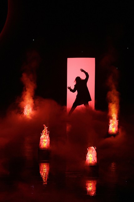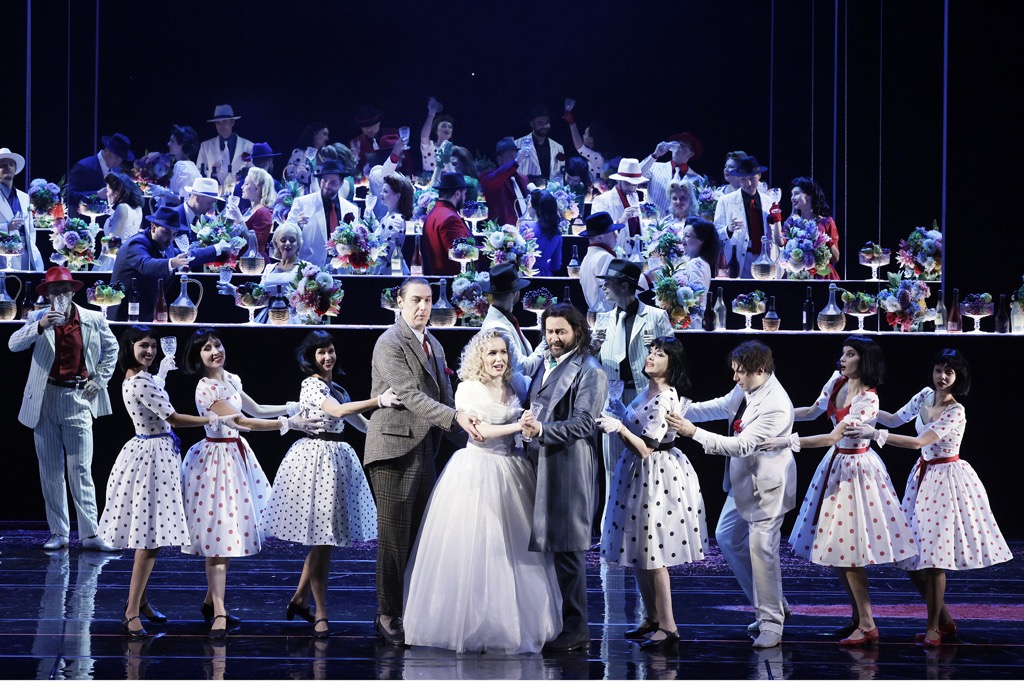 Еще под увертюру на сцену выносится «картинное» пластико-хореографическое шоу с вульгарным дефиле длинноногих девиц, затянутых в краснокожие платья-корсеты, а на их фоне и на фоне другой вспомогательной массовки перед взором зрителей проходит парад персонажей, апофеозом чего становится появление оперного протагониста, чье театральное имя давно уже стало нарицательным в масштабах планеты. Поначалу всё это, признаться, слегка настораживает, хотя протагонист новой постановки моцартовского «Дон Жуана» – на сей раз невероятно обаятельный и харизматичный певец-актер Ильдар Абдразаков. Но от мизансцены к мизансцене, от номера к номеру первое смешанное впечатление сменяется живым интересом, а интерес к спектаклю уверенно перерастает в полное его приятие.