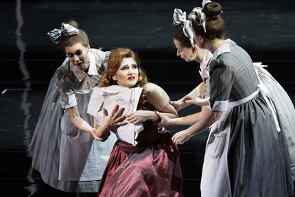 Оттого что на сей раз музыкальный пласт спектакля не апеллировал к аутентичности, то есть, как сейчас принято говорить высоким штилем, к исторически информированному исполнительству, он не только ничего не потерял, а на поверку, еще и многое приобрел! Музыкальный руководитель и дирижер Туган Сохиев вел спектакль довольно жестко, делая упор на весьма энергичную темпоритмическую и при этом музыкально выверенную артикуляцию, отчего бодряще живое, но несколько пряное звучание оркестра прозрачности и чувственной тонкости оркестровых нюансов недобирало. Но перенесемся на одиннадцать лет назад, чтобы «услышать» якобы аутентичный оркестр Теодора Курентзиса, который возомнил себя едва ли не демиургом от музыки… Забыть такое просто невозможно! То было совершенно банальное, абсолютно безакцентное, неяркое и на редкость аморфное музицирование: совместно с «изощренным» визуальным рядом оно навевало лишь скуку и досаду за впустую потраченное время...