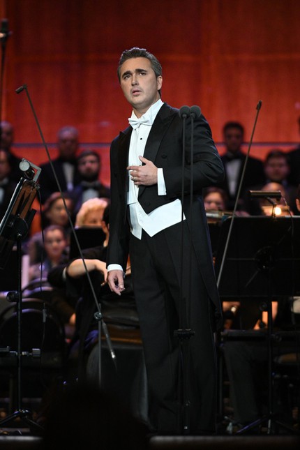 В арии Шемаханской царицы из «Золотого петушка» Римского-Корсакова чувственно стерильные, «холодные» колоратурные экзерсисы Светланы Москаленко (Михайловский театр), равно как и звучные децибелы громогласного баритона-силовика Эльчина Азизова (Большой театр) в озвученных им куплетах Эскамильо из «Кармен» Бизе, с элегантностью французского стиля ничего общего не имевших, также лишь были приняты «к свéдению». А чего ради в программу оперного гала-концерта вошел вдруг романс Чайковского «День ли царит» в типичном исполнении «для галочки» сопрано Марии Пахарь (Музыкальный театр имени Станиславского и Немировича-Данченко), вообще загадка… Миниатюрными островками музыкальных впечатлений, за которые хоть как-то уже можно было уцепиться, всё же стали ария Дона Базилио из «Севильского цирюльника» Россини и песня певца за сценой из «Рафаэля» Аренского. Первую исполнил бас Бьеонг Мин Гил (Южная Корея), а вторую – пронзительно лирический тенор Станислав Мостовой («Новая Опера»).
