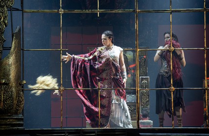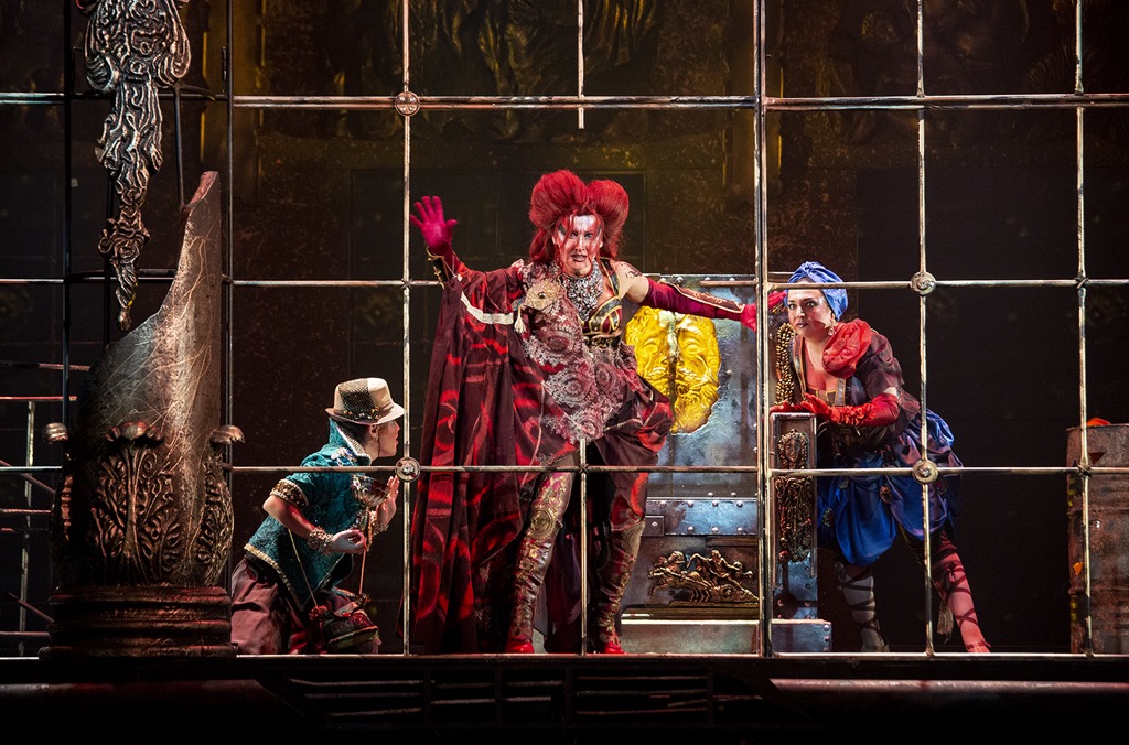 Возможности непосредственно ощутить в качестве зрителя атмосферу крошечного зала «Санкт-Петербург Оперы» с ее крошечной сценой у рецензента никогда не было: знакомство с рядом спектаклей этого театра связано исключительно с его московскими гастрольными вояжами. Но по фотографии сцены и зала на фирменной цветной обложке, в которую обычно упаковываются кустарные зрительские программки, легко можно понять, что сцена «Геликон-Оперы» существенно больше. И, по всей видимости, чтобы клетка, в которой в этой постановке и разворачивается всё действо, сиротливо не стояла посреди сцены с заведомо бóльшими габаритами, на флангах к ней пристроили двухэтажные арки, включенные в сценографический гарнитур, но в спектакле никак не задействованные. Что ж, и в этом специфическом аспекте «колдовство» явно удалось, но всё остальное…