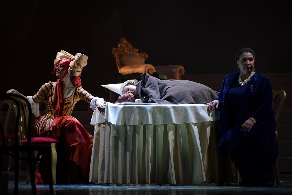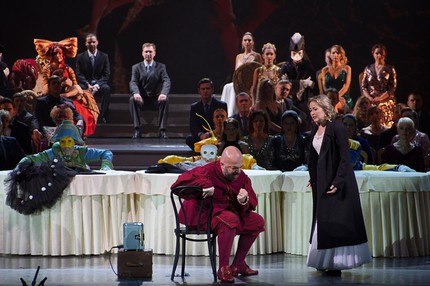 Убившая наповал своей чудовищной антитеатральностью и беспомощной режиссурой постановка «Вольного стрелка» Вебера, премьеру которой в Музыкальном театре имени Станиславского и Немировича-Данченко отыграли в конце прошлого сезона, режиссеру Владимиру Панкову на его постановку вердиевского «Риголетто» на этой же сцене, кажется, дала невиданный карт-бланш! Делай, что хочешь! Вот он и сделал не пойми что, слепив очередное «нечто» и в этом плане мертворожденного «Вольного стрелка» Александра Тителя перещеголяв! Если всё театральное убожество «Вольного стрелка» хотя бы попытались спрятать за смехотворную – на уровне детского сада – «концепцию», то спрятаться на этот раз было просто уже нé за что…
