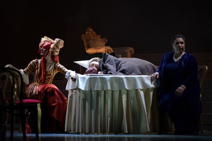 Расхожую сценографию и банальные костюмы, в которых вульгарно перемешались стили XIX и XX веков, а также эстетика площадной commedia dell’arte, смог «гениально» пристроить в проект Максим Обрезков. Проекционное кино на заднике явилось не менее «гениальным» озарением видеохудожников Кирилла Плешкевича и Яна Калнберзина (при участии Евгения Афонина). На всём протяжении большого оперного клипа «прожектором неправды» при всей режиссерской уязвимости стал свет, поставленный Анной Коротковой, а финальный штрих в сценическую вакханалию, в которой герои раздваивались и даже «растраивались» (то есть троекратно множились), внесла хореограф Екатерина Кислова. На волне гениального отсутствия режиссерской идеи певцы-солисты обрели танцевально-пластических двойников, а из-за частой смены актерских прикидов (клип есть клип!) лишь создавался эффект рутинного мельтешения, ничем не оправданного и никому не нужного.