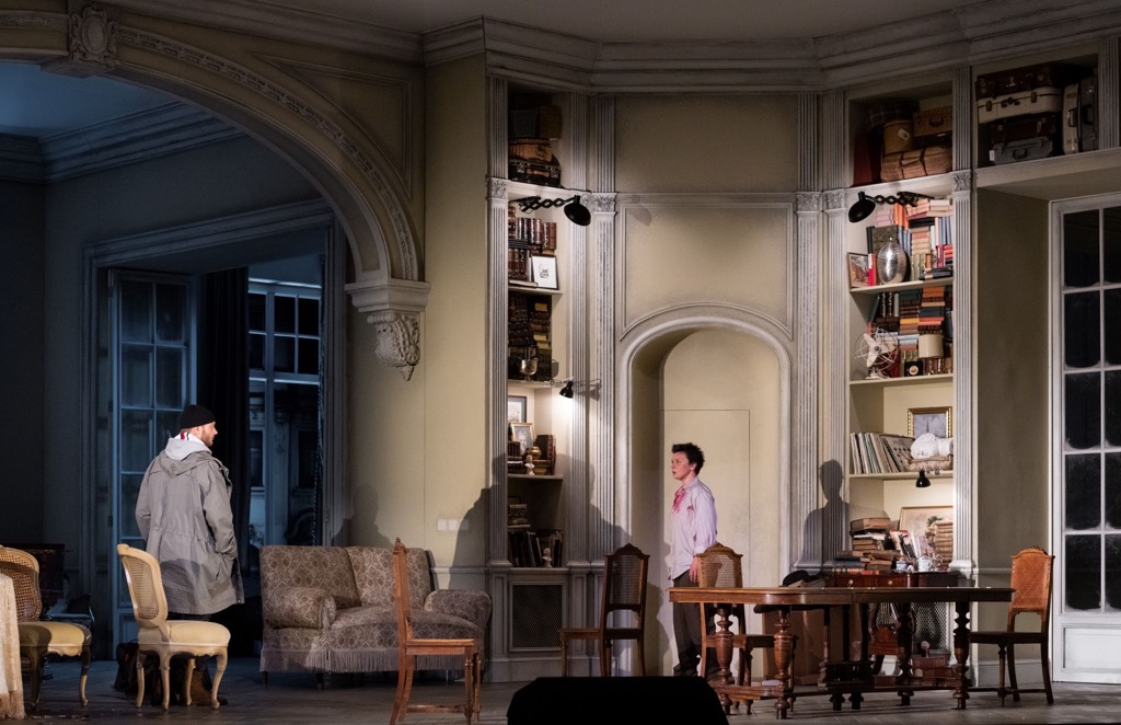 Эстонский баритон Лаури Вазар в роли Ореста заполнил собой всю сцену: могучий голос, выразительная своей зловещей тяжестью фигура. В конце он находит в библиотеке и рассматривает пластинку с записью «Электры» (в заглавной партии Биргит Нильсон). Можно предположить, что так Дмитрий Черняков выражает cвою любовь к этой опере и подчёркивает связь с традицией.