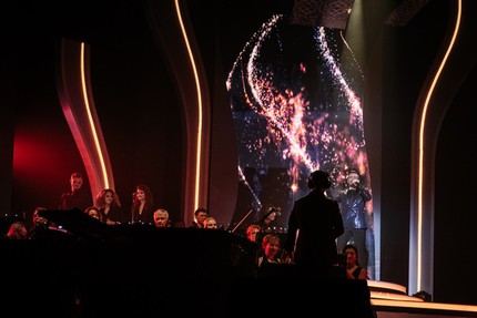 Но концерт «Ветра перемен» — не просто концерт, это еще и фантастическое зрелище: яркие многоцветные сполохи света с выходом каждого певца расцвечивают по-разному сцену и даже зал. Комбинации цветов и цветовые узоры — невообразимой красоты, поражаешься фантазии художника по свету Дмитрия Буряка (видео-контент, визуальная и техническая концепция «Q Stage Production» (Москва)!