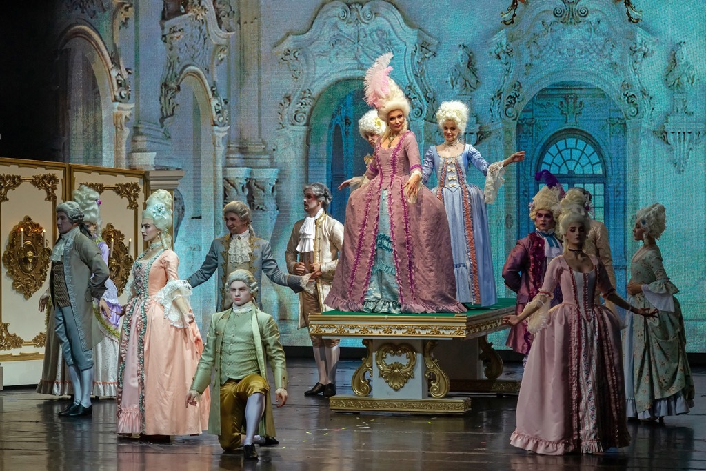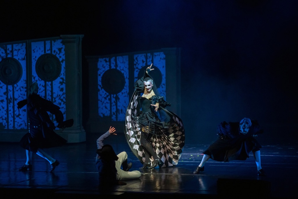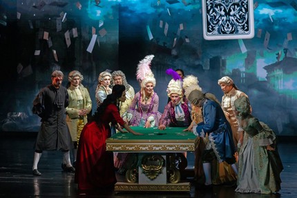 Очень интересно поданы масти колоды, причём и их костюмы, и пластическое решение. А отличный актёрский состав ставит на мюзикле «Дама Пик» крепкий знак качества.