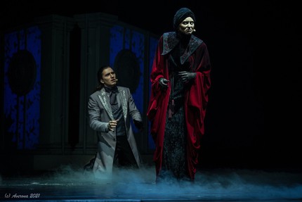 Замечательный тенор Антон Авдеев выступил сразу в двух ролях — герцога Филиппа Нуаре и военного инженера Германна. Оба — в сильной власти любви. Но если у Филиппа — искренняя любовь к юной красавице Наталье Чарской, то у Германа — любовь-страсть, любовь-средство для достижения цели, и он не знает точно — любовь ли это вообще или маниакальное желание узнать недоступную тайну.
