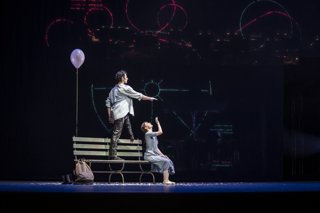 Проводником между земным и потусторонним мирами выступает продавец воздушных шариков (Флориан Поль); в поддержках ноги солистов путались в его огромном «букете».