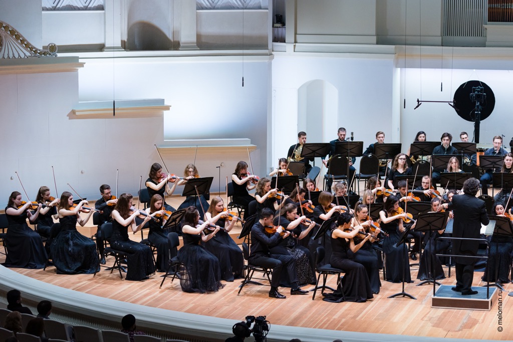 Но перед этим 17 октября 2019 года с тем же оркестром на той же сцене Большого зала Санкт-Петербургской филармонии Михаил Юровский, заменив Кшиштофа Пендерецкого (1933–2020), продирижировал программу, в которую вошли «Метаморфозы» Пендерецкого (Второй скрипичный концерт) и Седьмая симфония Бетховена. Тогда, благодаря прямой интернет-трансляции, ее слушателями смогла стать весьма большая аудитория, включая и автора этих строк. А на последнем выступлении Михаила Юровского в Москве рецензент побывал непосредственно. В программу того концерта, состоявшегося 22 апреля 2019 года (от даты нынешнего концерта-посвящения день в день три года назад!), вошли Третий фортепианный концерт Рахманинова и Пятая симфония Чайковского, и прошел он в Концертном зале имени П.И. Чайковского как раз с Российским национальным молодежным симфоническим оркестром!