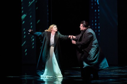 Хоровые страницы партитуры весьма масштабны и важны в общем контексте сюжета. Прозвучали они рельефно мощно и выразительно чувственно, на эмоциональном подъеме, со всей полнотой вербального погружения в живую ткань музыки, и в этом явно преуспели хормейстеры Ольга Рочева (главный хормейстер театра) и Алла Швецова. Подлинным же дирижером-медиумом, бережно и чутко транслировавшим звучание музыки в зрительный зал, стал музыкальный руководитель постановки Роман Денисов (главный дирижер театра). Партитура, в которой давно известна наперед каждая нота, прозвучала невероятно свежо и вольготно, и ее упоительность мастерски сочеталась с психологической рельефностью…