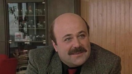 Итак, перед неприятный персонаж, однако, он всем нравится. Сан Саныч Любомудров — современный Чичиков. Неслучайно в «Мёртвых душах», снятых в те же годы, сыграл всё тот же Александр Калягин. Видимо, попал в точку и создал типаж. Уловил нерв эпохи. Так вот, Сан Саныч — никакой. Вообще. Но он умеет всё устроить. Он — мастер говорить тосты и комплименты. В своём роскошном по тем временам — домашнем! — кабинете Любомудров пишет поздравительные открытки, для которых припасены штампованные словеса — те, что непременно лягут на душу адресату. Всякому. Без разницы.