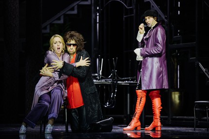 Верными соратниками режиссера (сценографами и художниками по костюмам) стали Ренате Мартин и Андреас Донхаузер, знакомые отечественной публике по «Идоменею». И то, что на поворотном круге на этот раз они придумали сценографический конструктор-трансформер, который по ходу дела, словно объемный пазл, не только открывал взору все свои грани, но и видоизменялся под абстрактные абрисы той или иной локализации сюжета, было действенно органично и рационально продуманно. Определенную зловещую иррациональность в донжуанскую вселенную постановки внес художник по свету из США Эй Джей Вейссбард. Автором минималистского живописного занавеса-диптиха, точно нацелившего на суть серьезной – не фарсовой – драмы выступил художник Ахсар Муриев.