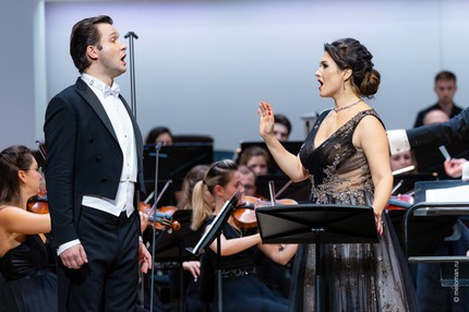 Вечер состоялся на главной филармонической площадке Москвы – в Концертном зале имени Чайковского. Сопрано Ольга Перетятько и бас Григорий Шкарупа в сопровождении Российского национального молодежного симфонического оркестра, за дирижерский пульт которого встал Михаил Татарников, пели арии и дуэты из опер, то есть формат концерта оказался самым что ни на есть привычным и традиционным. Но интрига была заключена в том, что услышать этот семейный дуэт мы смогли впервые, а также в том, что подобного рода эксклюзивными концертами нас баловали в последние годы крайне редко, и поэтому статусность обсуждаемого события в глазах публики сразу же поднялась до максимума.