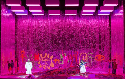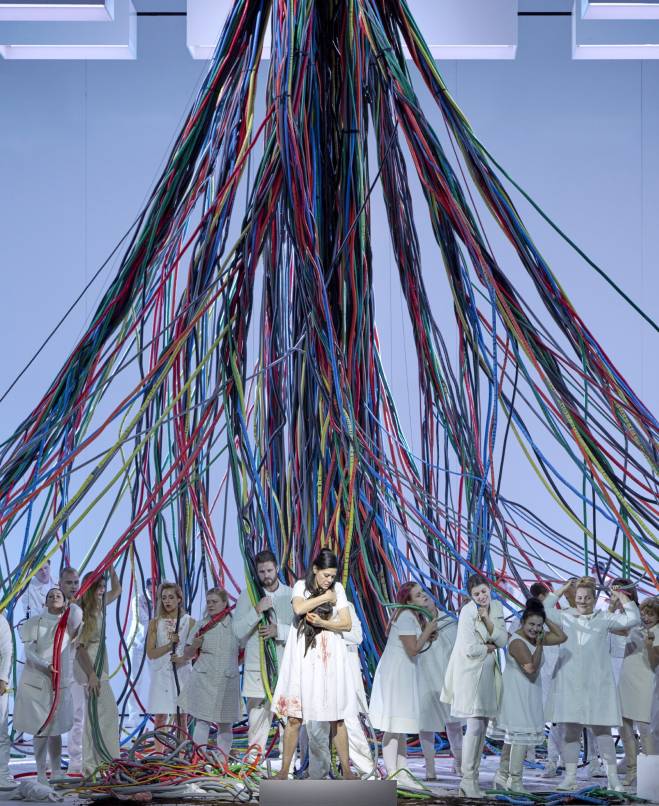 С точки зрения режоперного [4] мейнстрима постановка Биейто, — конечно, пиршество плагиата. Режиссёр берёт и, не стесняясь, ворует абсолютно всё: от света, цвета до мизансцен. Тут и прошлогодняя байройтская «Валькирия» Германа Нича, и мюнхенская «Русалка» Мартина Кушея, и «Тангейзер» Кастелуччи, и даже Бунюэль не остался в стороне, — вот прямо глаза разбегаются от наворованных цитат: настоящая оперная энциклоБРЕДия.