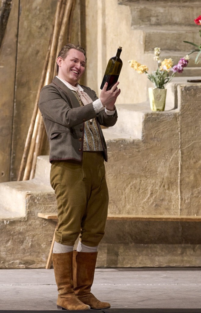Российский тенор, бывший солист Большого театра, давно получивший мировое признание как один из лучших оперных певцов лирического репертуара, Богдан Волков тонко выстраивает вокальный портрет своего непутёвого и наивного Неморино, и уже после первого глотка вина, полученного от шарлатана Дулькамары в качестве любовного эликсира, перед нами начинает раскрываться искренняя детская природа влюблённого парня. С лёгким изяществом, со сливочно-плавными вокальными переходами и тончайшей хрупкости элегантными пиано была исполнена хрестоматийная ария Una furtiva lágrima.