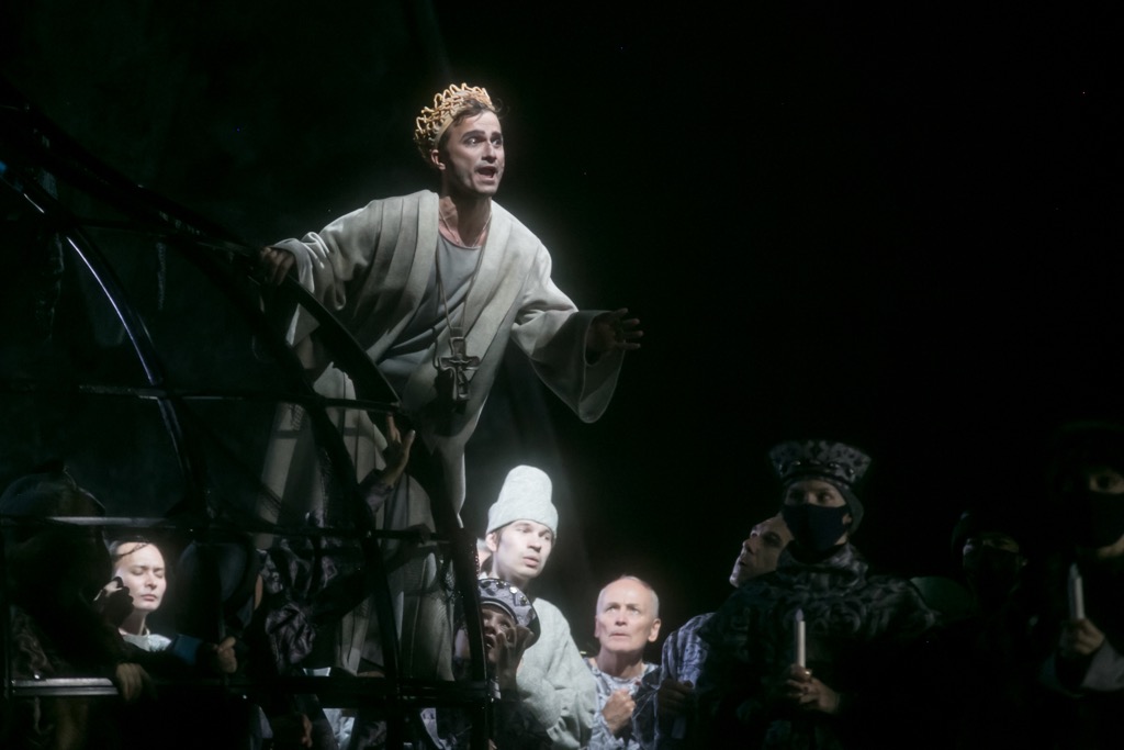 Исходя из стиля и режиссерских задач спектакля, в части актерского перевоплощения весьма убедительно – даже с неожиданной «резвостью» и удивительно запоминающимся куражом! – показал себя приглашенный солист из Москвы Руслан Розыев, выступивший в партии Бориса в двух ноябрьских спектаклях. Однако искусством вокальной речитации, искусством рафинированно тонкой и психологически емкой интонации эффект, сравнимый с актерско-драматическим, исполнителю произвести, увы, не удалось. Партия Самозванца в музыкально-драматическом отношении также просела, но если сравнивать приглашенного из Москвы и спевшего ее в первый день Дмитрия Боброва с солистом театра Владиславом Емелиным, то пальму первенства следует решительно отдать краснодарскому исполнителю, музыкальность и чувство стиля которого не подвели певца и на этот раз.