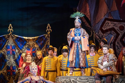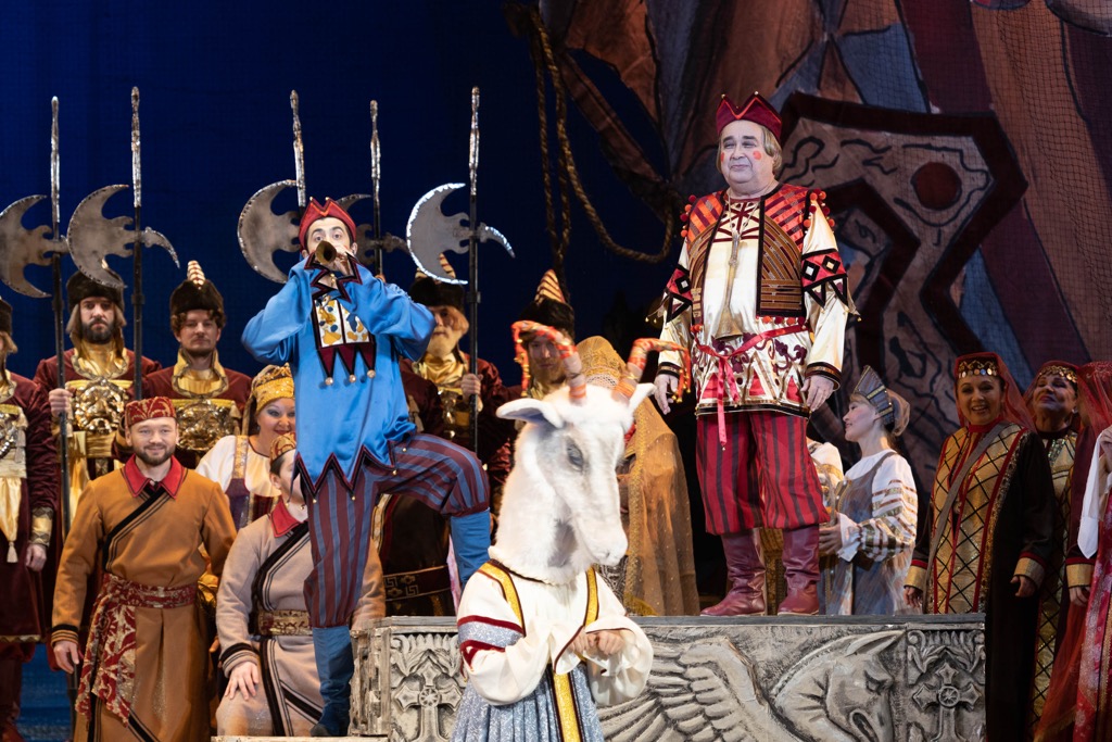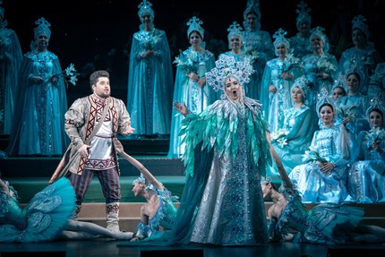 в тот заповедный остов историчности и былинности, что в русском театральном искусстве сложился к рубежу fin de siècle (то есть к концу XIX-го – началу XX века) и, несмотря на «наступление» модерна, а затем и постмодерна, каким-то чудом уцелел после революции в советское время и даже оставался визитной карточкой отечественной оперы вплоть до безвременья из-за распада СССР. В этом спектакле мы погружаемся в ауру живого театра «сказочника» Римского-Корсакова словно в реальном времени… Мы словно переносимся в эпоху композитора и наблюдаем из зрительного зала за его восхитительным творением глазами современной ему публики…