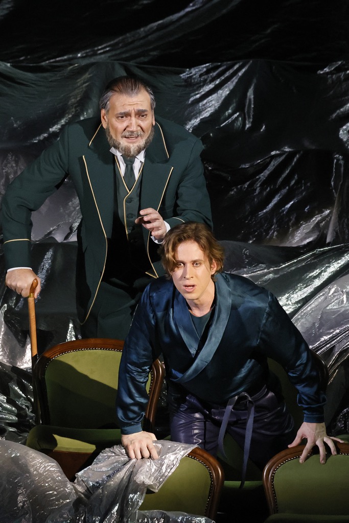 Это типичный эрзац пения, построенного не на мелодике, не на кантилене, не на дыхании, а исключительно на силовом напоре, на что в музыкальных номерах персонажей внимание – в силу наиболее осязаемого упоения самой музыкой – обращаешь не столь уж пристальное. Речь идет, прежде всего, о хрестоматийной арии Тамары в третьем акте и каскаде великолепных ариозных кантилен в партии Демона. Полное фиаско – также партия Князя Синодала в исполнении Ильи Селиванова, а работы других исполнителей первого дня – Андрея Валентия (Князь Гудал), Валерия Гильманова (Старый слуга Синодала) и Алины Черташ (Няня и Ангел) – с горем пополам зачетны лишь номинально. В партии же Гонца Синодала – партии «кушать подано» – для протокола назовем и Василия Гафнера.