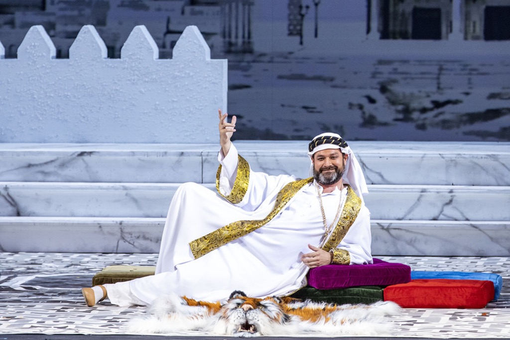 Но Ильдар Абдразаков, обладатель роскошного по тембральной палитре баса-кантанте, как раз то самое счастливое исключение и есть, и в том, что он сполна владеет культурой бельканто Россини – как комического, так и серьезного – автору этих строк довелось убедиться еще в начале 2000-х на Rossini Opera Festival в Пезаро. В 2002 году это был изумительный Селим в «Турке в Италии», а в 2003-м – совершенно незабываемый Ассур в «Семирамиде»! Понятно, что голос любого певца на протяжении его карьеры претерпевает объективные возрастные изменения, но приобретаемое мастерство, если певец рачительно расходует свои вокальные ресурсы, дает ему возможность с годами сохранять и свежесть тембра, и пластичность, и подвижность звучания. К Ильдару Абдразакову всё это имеет самое что ни на есть прямое отношение, и сегодня в партии бея Мустафы – едва ли не «родственника» турка Селима – своим изысканно-утонченным артистическим куражом и вокальной куртуазностью исполнитель забирает сердца меломанов не менее ловко!