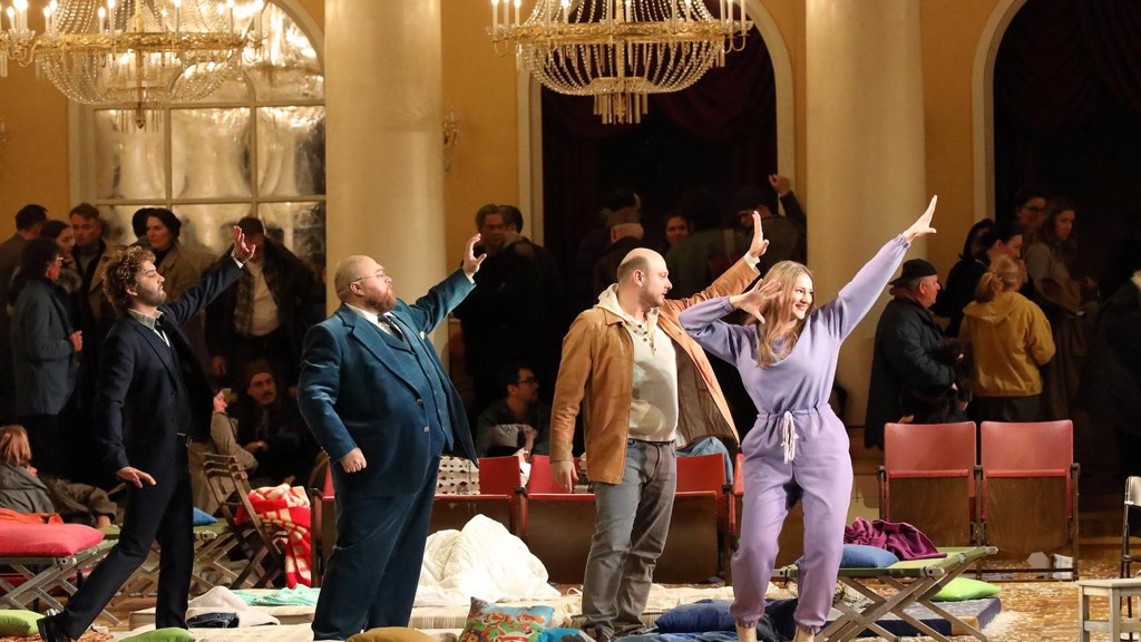 Несмотря на то, что для меня «Евгений Онегин» Чернякова, по-прежнему, остаётся лучшим произведением в стиле режиссёрского переосмысления классики [1], спектакль «Война и мир», показанный на сцене Баварской оперы 5 марта 2023 — в день 70-летия смерти Прокофьева и Сталина, — по цельности, точности и тонкости авторского высказывания, по уровню концентрации смыслов и экономии выразительных средств, безусловно, в том же самом регистре достоин звания «шедевра № 2».