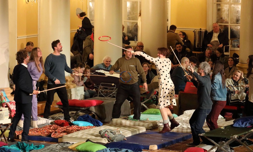 Совершенно очевидно, что зрителю, не знакомому с романом Л. Н. Толстого, с оперой С. С. Прокофьева и с его же судьбой, не говоря уж об истории наполеоновского похода и Отечественной войне 1812 года [4], смотреть спектакль невероятно сложно. Тем более что ключом к пониманию внутренней драматургии предложенной режиссёром концепции является роскошно воссозданный интерьер Дворянского собрания — Колонного зала Дома Союзов [5]. Здесь важно отметить выдающуюся работу Глеба Фильштинского, интуитивно реконструировавшего световую палитру партитуры Прокофьева [6].