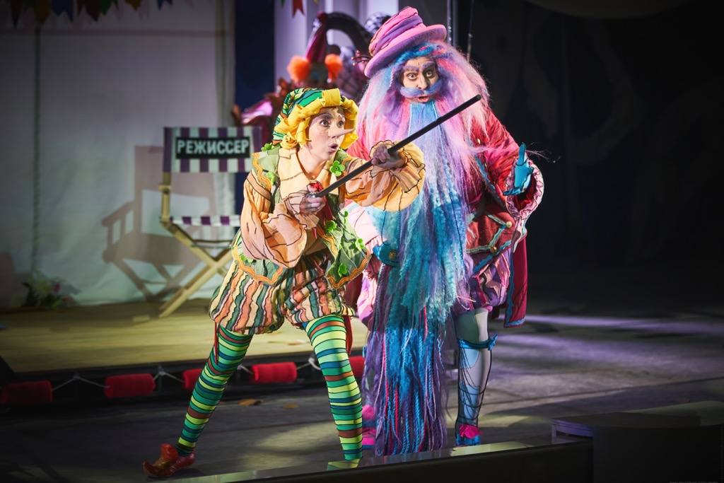 Имея в виду усилия всех создателей постановки, включая композитора-дирижера, так и хочется скаламбурить, что спектакль разыгран как по нотам! Но в действительности ведь всё так и есть! И если поначалу кажется, что режиссер премьерного проекта функции «режиссера театрально-кинематографического шоу», происходящего на сцене, делегировал умудренному в жизни профессору всех театральных наук Карабасу Барабасу, то к финалу спектакля отчетливо понимаешь, что подлинный режиссер всего сценического действа – персонаж-травести Буратино. Потрясающе яркое музыкально-артистическое воплощение партии главного героя невероятно «озорной», фантастически подвижной и гуттаперчевой Галиной Петкевич и есть тот краеугольный камень, на котором всё здание спектакля стало возможно выстроить удивительно прочным и стройным, без видимых строительных швов, но с рельефно осязаемым эмоциональным и психологическим наполнением.