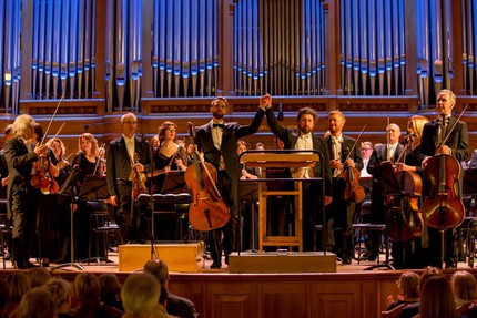 С новым для него симфоническим коллективом он нашел доверительный язык и на сей раз, но на место трагедийному нерву, который в Седьмой симфонии Бетховена так живо и мучительно клокотал еще на прошлогоднем концерте памяти Михаила Юровского в Москве, пришло ощущение торжественности и вечного покоя. Наступила всеобщая умиротворенность, сложилась, если хотите, та самая гармония сфер, к которой всегда стремится всё сущее, но в неспокойном XXI веке до гармонии ли нам? Оказывается, что да! Всеобъемлющая философичность красной нитью проступила в каждом из исполненных в этот вечер опусов, но главный узел мудрости жизни на сей раз завязался в Концерте-элегии на четырех струнах солирующей виолончели…