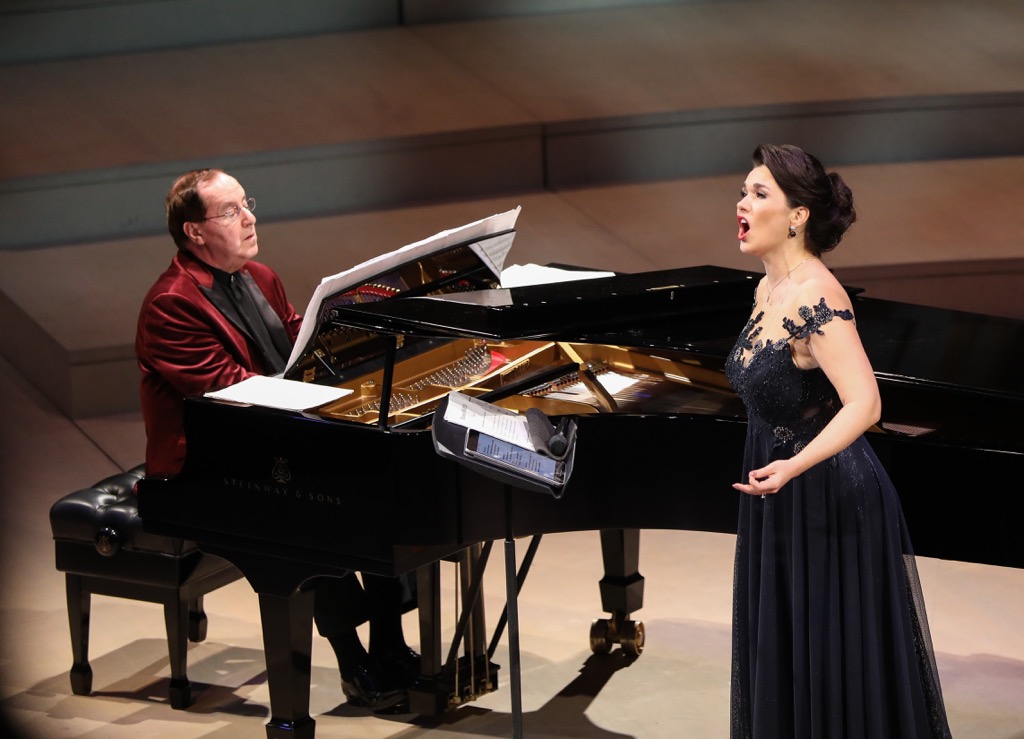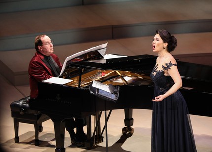 «Травка зеленеет, / Солнышко блестит; / Ласточка с весною / В сени к нам летит», – кто не знает этих весенних строчек из стихотворения для детей русского поэта XIX века Алексея Плещеева! Сопрано-ласточка и впрямь прилетела, чтобы представить московской публике новую программу в МКЗ «Зарядье» 25 апреля. Прилетела вслед за игривым бисом, который о грациозно-свободной перелетной пташке как раз и поведал. Он прозвучал под занавес программы в Большом зале Московской консерватории в декабре, и вот Ольга Перетятько снова в Москве. Как и обещала певица, выступить с ней в качестве концертмейстера со второй попытки приехал Семён Скигин.