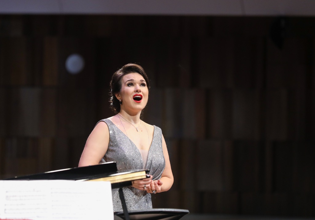 Эти две фортепианные пьесы стали границей перехода к избранной подборке из шести романсов Рахманинова, 150-летие со дня рождения которого отмечается в нынешнем году: «Здесь хорошо» на слова Галиной (op. 21, № 7), «Оне отвечали» на слова Гюго в переводе Мея (op. 21, № 4), «Маргаритки» на слова Северянина (op. 38, № 3), «Христос воскрес» на слова Мережковского (op. 26, № 6), «Вокализ» (op. 34, № 14) и вечный шлягер «Весенние воды» на слова Тютчева (op. 14, № 11). Без этого романса, когда речь идет о Рахманинове и исполнительницах-сопрано, кажется, не обходится сегодня ни один концерт.