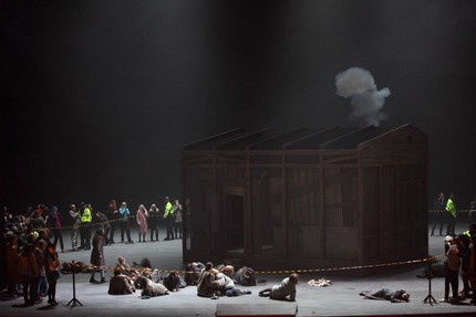 Мы не будем придираться к аргументам уважаемого суда, а посмотрим лучше, что же на самом деле представляет собой спектакль Дмитрия Чернякова, в основе которого лежит не героический пафос партитуры Пуленка, а роман Гертруды фон Лефорт «Последняя на эшафоте» [5]. К тому же повод есть: на днях в Мюнхене при полупустом зале состоялось двадцатое представление этого резонансного спектакля (следующие два представления тоже были не распроданы на треть).