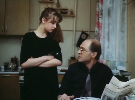 Сегодня я хочу вспомнить не об основной линии повествования, но об одном кошмарном фрагменте, великолепно иллюстрирующем нравы «золотых-восьмидесятых». Итак, это — диалог, состоявшийся на кухне между немолодым отцом и юной дочкой, требующей штаны из магазина «Берёзка» (заметим, что в повести этого нет и быть не могло, хотя «Берёзки» наличествовали).