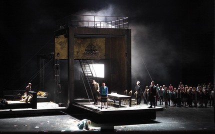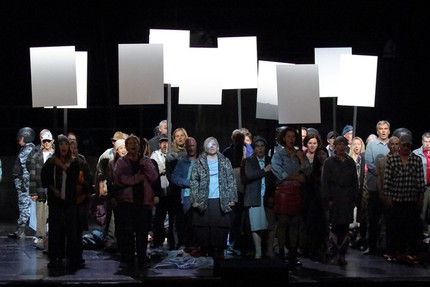 Мы видим и жестокость полиции, заставляющей толпу озвучивать нужную властям точку зрения, и чиновничью свору, напоминающую государственных клерков всех времён и народов, и хладнокровные убийства детей Бориса ещё до гибели самого царя. Ёмкость выразительных средств, музыкальность мизансцен и простота организации сценического пространства делает этот спектакль, если и не лучшей интерпретацией партитуры Мусоргского, то уж точно одним из лучших спектаклей самого режиссёра.