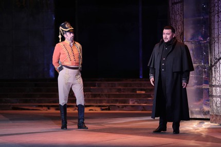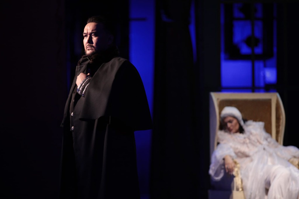 В музыкальном аспекте визитная карточка партии Германа – упомянутая выше ария «Что наша жизнь?». Прозвучала она изумительно чувственно и пафосно, но долгий путь к ней через всю оперу проходит через такое море самых разных по ситуационному настрою вокальных моментов, что без грамотного распределения певческих ресурсов в этом море можно легко утонуть, «не дожив» до финала. Распределять силы и пользоваться резервами исполнитель, однозначно, умеет, и после вокально изматывающей первой картины первого акта ариозо Германа «Прости, небесное созданье» предстало лирически светлым номером, спетым на небывалом душевном подъеме. А уже сцена в спальне Графини, сцена-монолог в казарме, а также сцена с Лизой у Зимней канавки вновь явили вокальный драматизм, но нарисованный не одной «силовой» краской, а тонкими градациями оттенков и чувств…