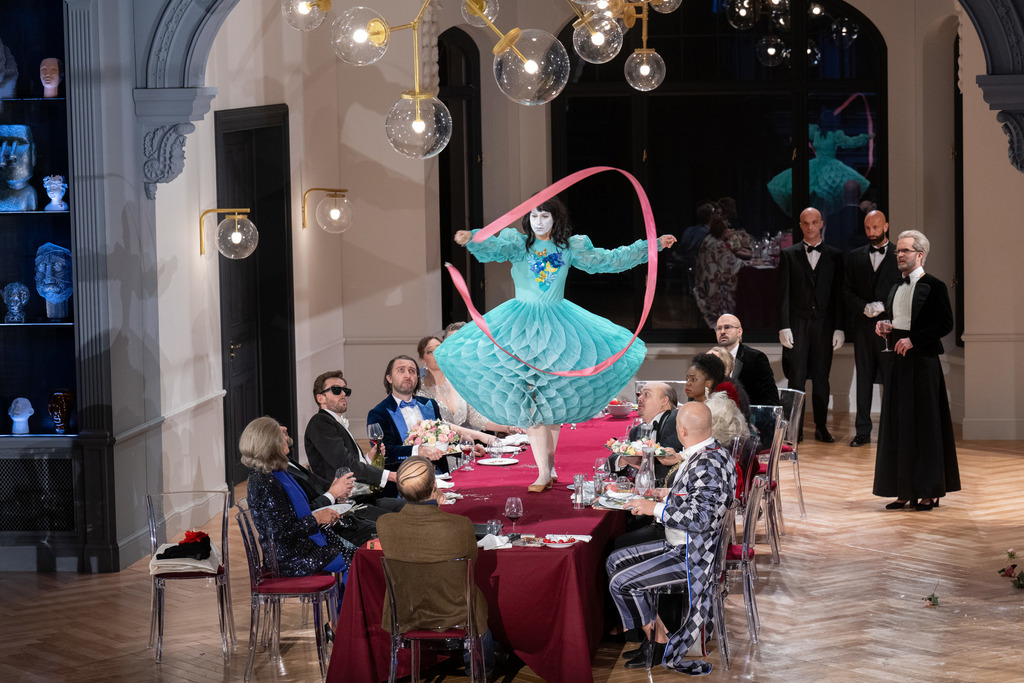 Признаться, я не очень понимаю, зачем сублимировать сексуальную неудовлетворённость пубертатной барышни в шизоидное помешательство вместо того, чтобы просто по тексту отрезать пророку голову, хоть бы и в элегантном современном буржуазном интерьере: как известно, в таких интерьерах вообще-то все только этим и занимаются. Но режиссёр будто стеснительно прикрывает ладошкой рот, как бы подмигивая нам: ну это же всё понарошку, никакой головы никто никому не отрезал, а вся библейская история, как и драма Оскара Уайльда, и партитура Рихарда Штрауса, – есть некое оскорбление чувств правящих и вообще всё это фейк-ньюс. Эта самоцензура в наше тревожное время, конечно, объяснима, и позиция постановщика, конечно, понятна, но вкупе с отмеченными недостатками спектакля производит очень плачевное впечатление.