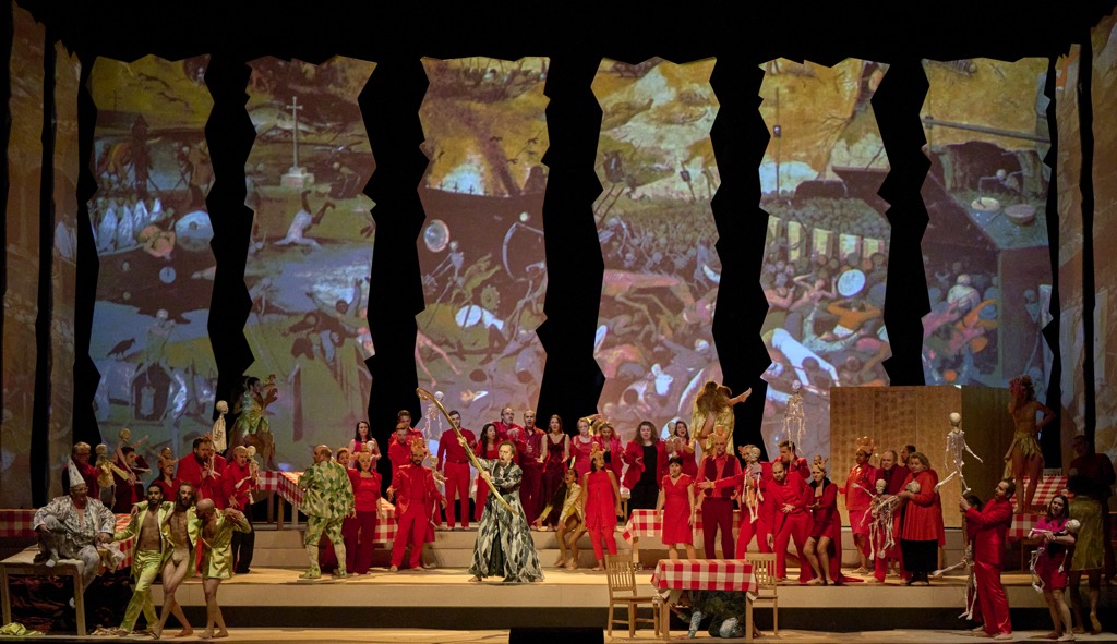 В своей саркастической партитуре Лигети соединяет бразильскую самбу, андалузское фламенко, болгарские ритмы, венгерские танцы, экзотические ударные, бытовые звонки и даже цитирует знаменитый канкан Ж. Оффенбаха из «Орфея в аду». Оркестр Венской оперы под управлением Пабло Эрас-Касады блестяще справляется с этой стилистической пересортицей «Великой жути», а в финале хрупкой вязью пассакалии элегантно провожает в последний путь заражённого радостью и убитого жизнью Некроцаря, напоминая своим мастерством о том, что единственным противоядием против смерти является только жизнь.