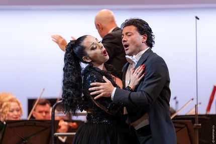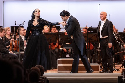 Эти оркестровые пьесы, в которых на популистское подыгрывание банальной клоунаде певца-тенора дирижер не отвлекался, прозвучали эмоционально рельефно, академически стильно, даже с явственным ощущением подлинного музыкантского драйва. Однако этого драйва так недоставало, когда оркестровый аккомпанемент де-факто лишь обслуживал вокальную комедию, что разыгрывал «знаменитый» тенор, а его партнерша-сопрано – надо отдать ей должное – всю эту вампуку по ходу делу принимала всё же довольно сдержанно.