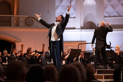 Некогда светлый лирический голос певца со временем, конечно, приобрел известную матовость тембра и осязаемое утяжеление, но собственно драматической фактурой на сегодняшний день не располагает. Так что спетым ариям лирических героев – песенке Герцога из «Риголетто» Верди и романсу Неморино из «Любовного напитка» Доницетти – тонкое изящество стиля и вокальная пластичность явно уже не грозили, а ариям героев драматического амплуа, также появившимся в программе, – обеим ариям Каварадосси из «Тоски» Пуччини и, в особенности, ариозо Канио (!) из «Паяцев» Леонкавалло – ощутимо не хватало насыщенности посыла, объемности звукоизвлечения и артистического драйва.