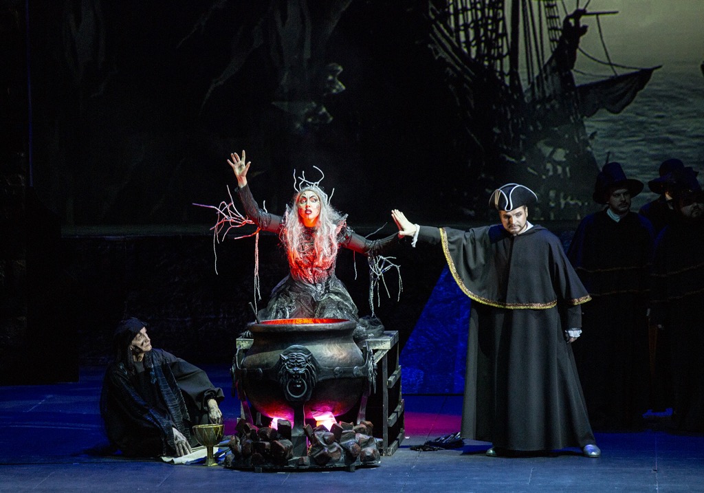 Романтический запал создателей спектакля, поставивших на традиционную классику мизансцен и грандиозную, монументальную зрелищность, чего в большинстве нынешних постановок уже не найти, в полной мере перешел и на «квинтет» певцов-солистов, ставший главным движителем интриги. В первый день гастролей его составили Гузелья Шахматова (Амелия), Алексей Пьянков (Риккардо), Андрей Меркульев (Ренато), Алиса Чечель (Ульрика, колдунья) и Эльвира Авзалова (Оскар, паж графа). Последняя («невнятная» Джильда в «Риголетто» на прошлых гастролях) на сей раз подкупила спинтовостью, более плотной и чувственной в сравнении с привычной «лирикой», а в инфернально «землистом» (хотя и малообъемном) звучании Алисы Чечель проступил не иначе как глубинный демонизм…
