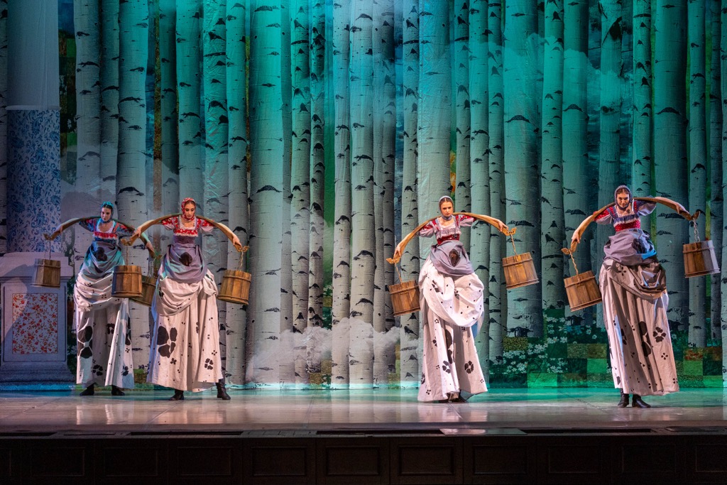Первоначально трёхактный балет стал компактнее — двухактным (продолжительность спектакля с одним антрактом — не более двух часов), но в то же время более зрелищным, за счет добавления массовых сцен. Народная сцена с игрой в горелки на именинах поварихи Берестовых, псовая охота, танцы прибывших гусаров с уездными барышнями поставлены необычайно изобретательно, с органичным введением национальных русских элементов в ткань классического танца.
