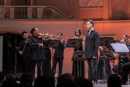 Априори верилось в чудо благодаря Дмитрию Синьковскому, музыканту, имя которого до недавних пор ассоциировалось исключительно с барочным исполнительством. Некогда скрипач-виртуоз, дирижер-основатель Ансамбля барочной музыки «La Voce Strumentale» и даже по совместительству контратенор весьма яркой, запоминающейся фактуры – сегодня художественный руководитель и главный дирижер полносоставного Оркестра «La Voce Strumentale» Нижегородского государственного академического театра оперы и балета им. А.С. Пушкина. С сим коллективом в его камерном составе и с инструментарием барочной эпохи этот дирижер, взявший на себя и функцию скрипача-концертмейстера, представил программу, разительный контраст которой не столько соединил, сколько разъединил прошлое и настоящее. Как оказалось, пропасть между ними пролегла огромная!