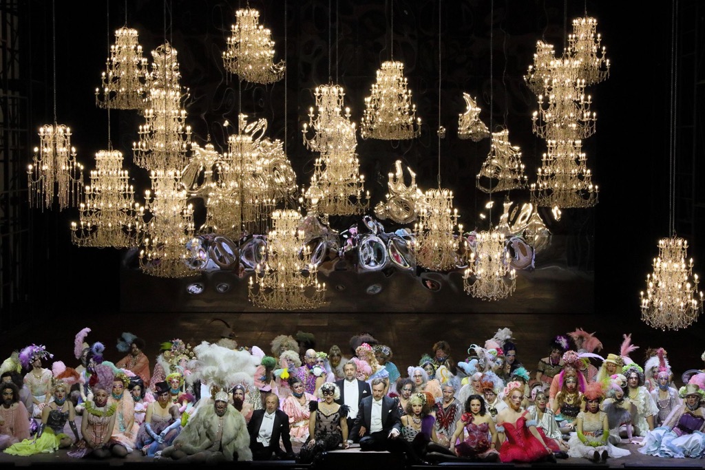 В новом спектакле Барри Коски на сцене Баварской государственной оперы русский миллионщик Орловский изображён трансвеститом в образе драг-куин (то ли Киркоров, то ли Заза Наполи) в исполнении контратенора (элегантная, хоть и не всегда вокально безупречная работа Эндрю Уоттса). Этой, безусловно, яркой находки было бы вполне достаточно, чтобы спектакль вошёл в историю, но неутомимый шутник, Барри Коски стремится усилить успех и переодевает в женское бельё, чулки и туфли и начальника тюрьмы Фалька, и Габриэля Айзенштейна, раздевает нотариуса Блинда, а уж в каком виде появляются артисты миманса и кордебалета, оглушающие визгом звуки знаменитой польки „Unter Donner und Blitz“, превращённой в свальный канкан, — лучше не говорить. Талантливый режиссёр будто забывает, что оперетта есть пародия на пошлость, а не её апофеоз, и превращает музыкальный театр в музыкальный балаган.